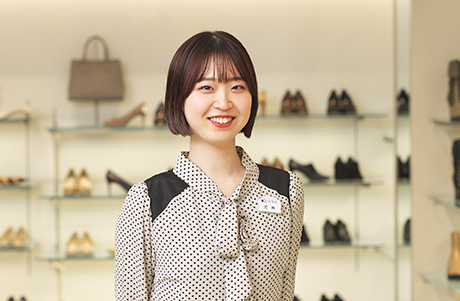 入社して間もない頃、ある目的を持って、靴をお探しになっているお客様がいました。仕事の日に長時間履いても疲れない靴、でもヒールが高くてデザインが可愛らしい靴。何足かを試着していただき、お客様の足に合わせた調節が必要だと判断した私は、研修で教わった通りに革を柔らかくして横幅の調節をし、やっとお客様が納得のいく履き心地を実現。その場で調節ができることをご存知なかったお客様は、「これからもあなたに接客をお願いしたい」と、とても喜んでくださいました。その後は、お店に来るたびに「青島さん、青島さん」と話しかけてくださいますし、さらに娘さんもダイアナで靴をお買い求めいただくまでになり、もう4年のお付き合いになります。こうしてお客様との関係が積み重なっていくところに、この仕事のやりがいを感じています。