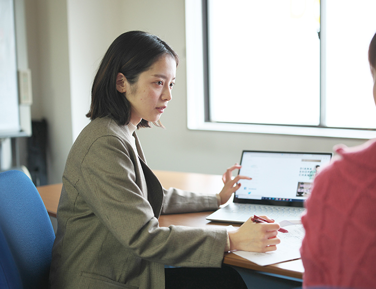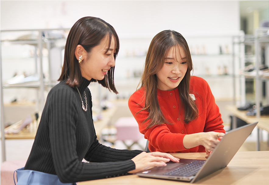 靴はファッションのトータルコーディネートの中でも重要な位置を占めています。そのため、デザインや機能、履き心地など、きめ細かい商品づくりが不可欠です。また、店舗運営やサービス、ブランディングにも高い感性が求められます。それらを通じて、女性の個性を演出する「美足(脚)文化」を提案すること。それがダイアナの不変のミッションです。